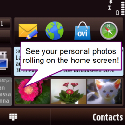 See a nice show of your photos on the home screen. The app shows scaled thumbnail images of your photos.